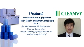 We interviewed Mr. Kazuhiko Okamura, President of Cleanvy Corporation, a cleaning equipment manufacturer specializing in industrial cleaning with deep knowledge in the field, who is the creator of hydrocarbon-based cleaning machines 'CLEANVY' and 'CLOVA', and next-generation fluorinated cleaning machines 'FISTA' and 'FLOVA', about industrial cleaning machines past and future.